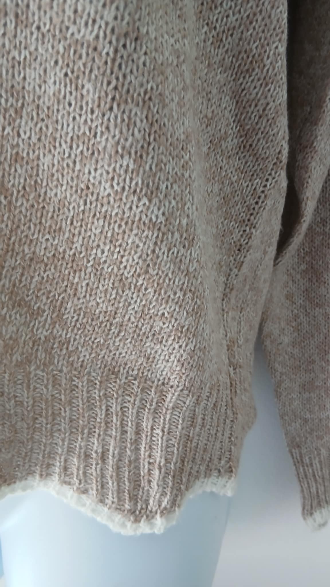 Pull over élégant beige, blanc sur col et poignet