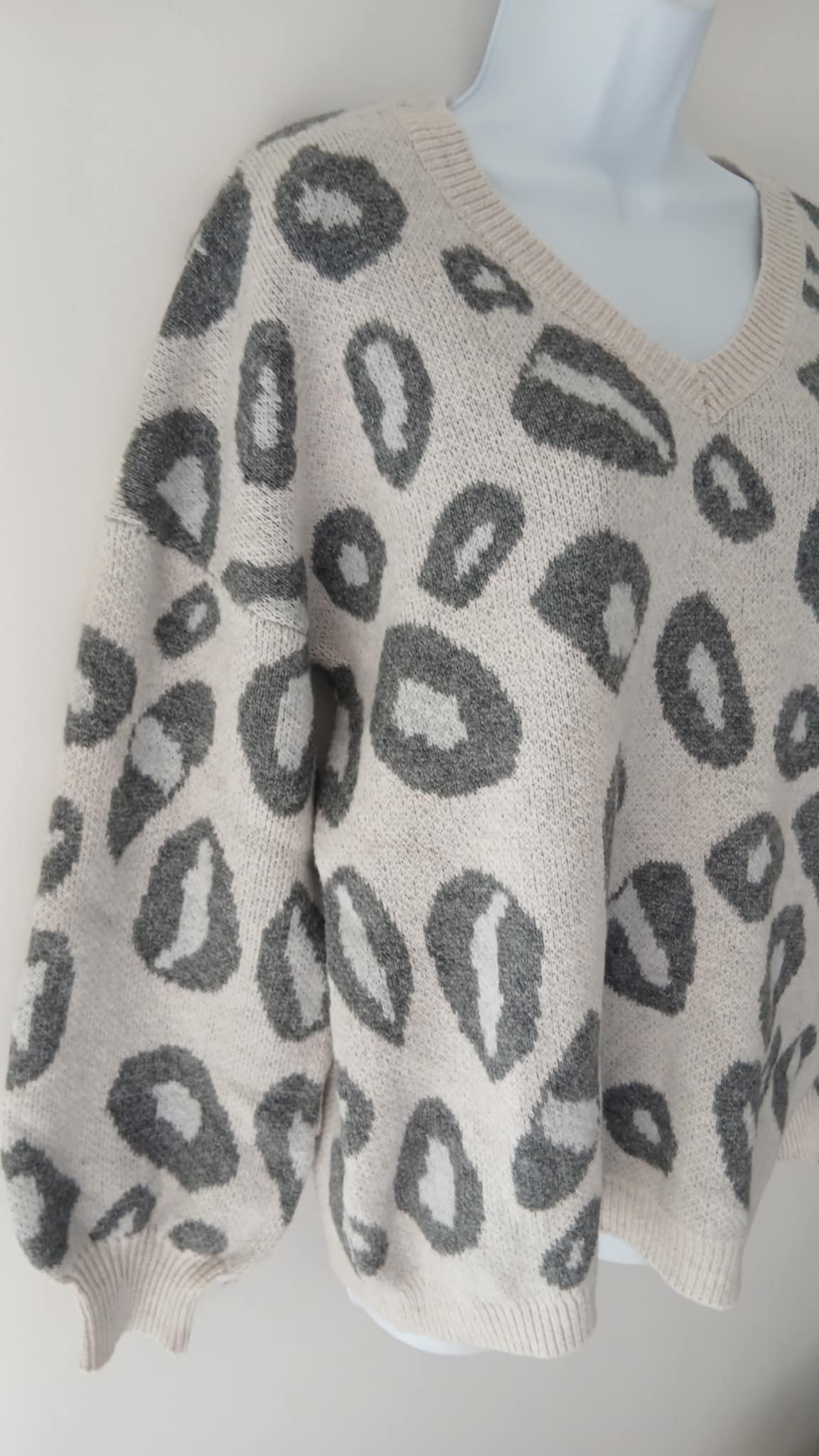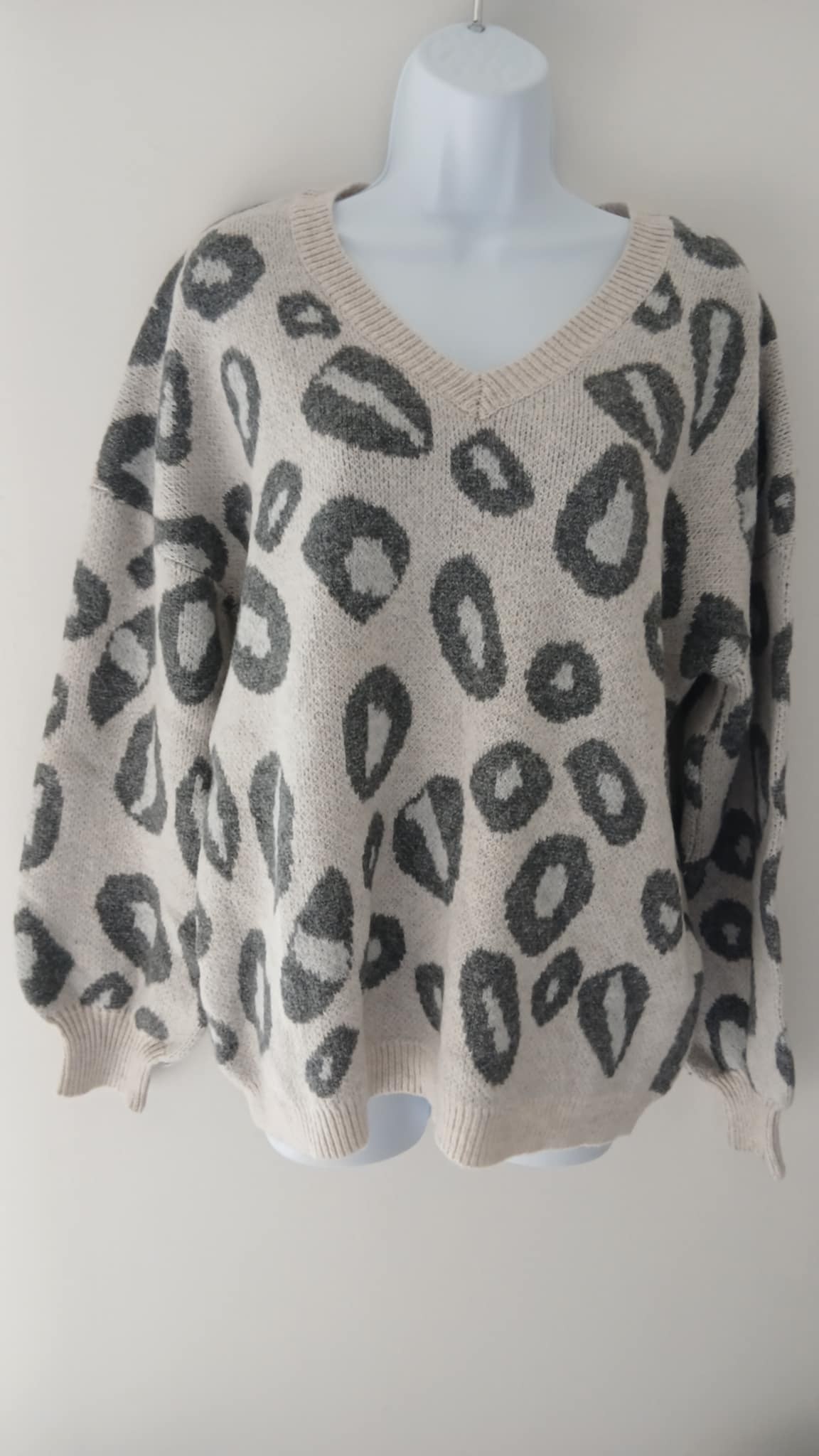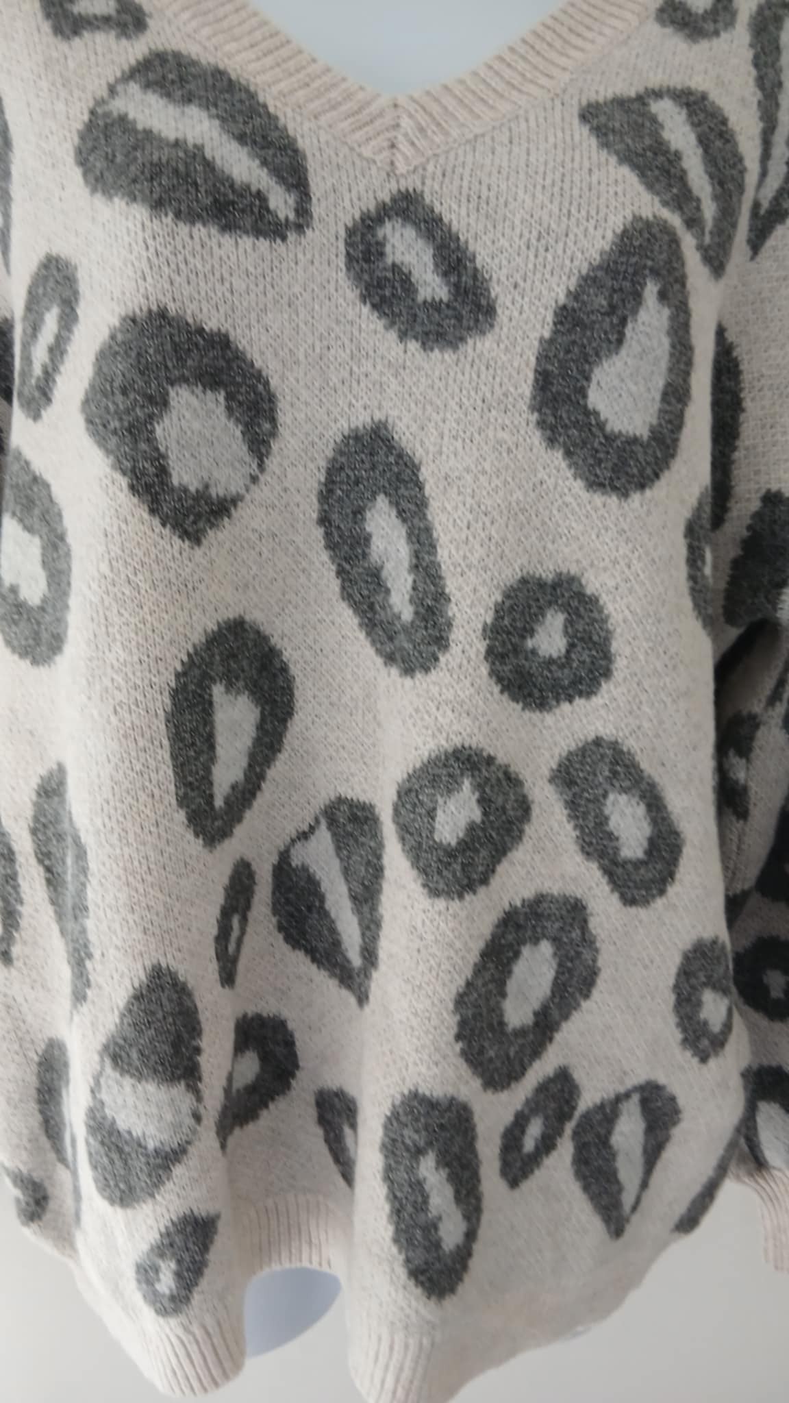 Pull crème imprimé gris