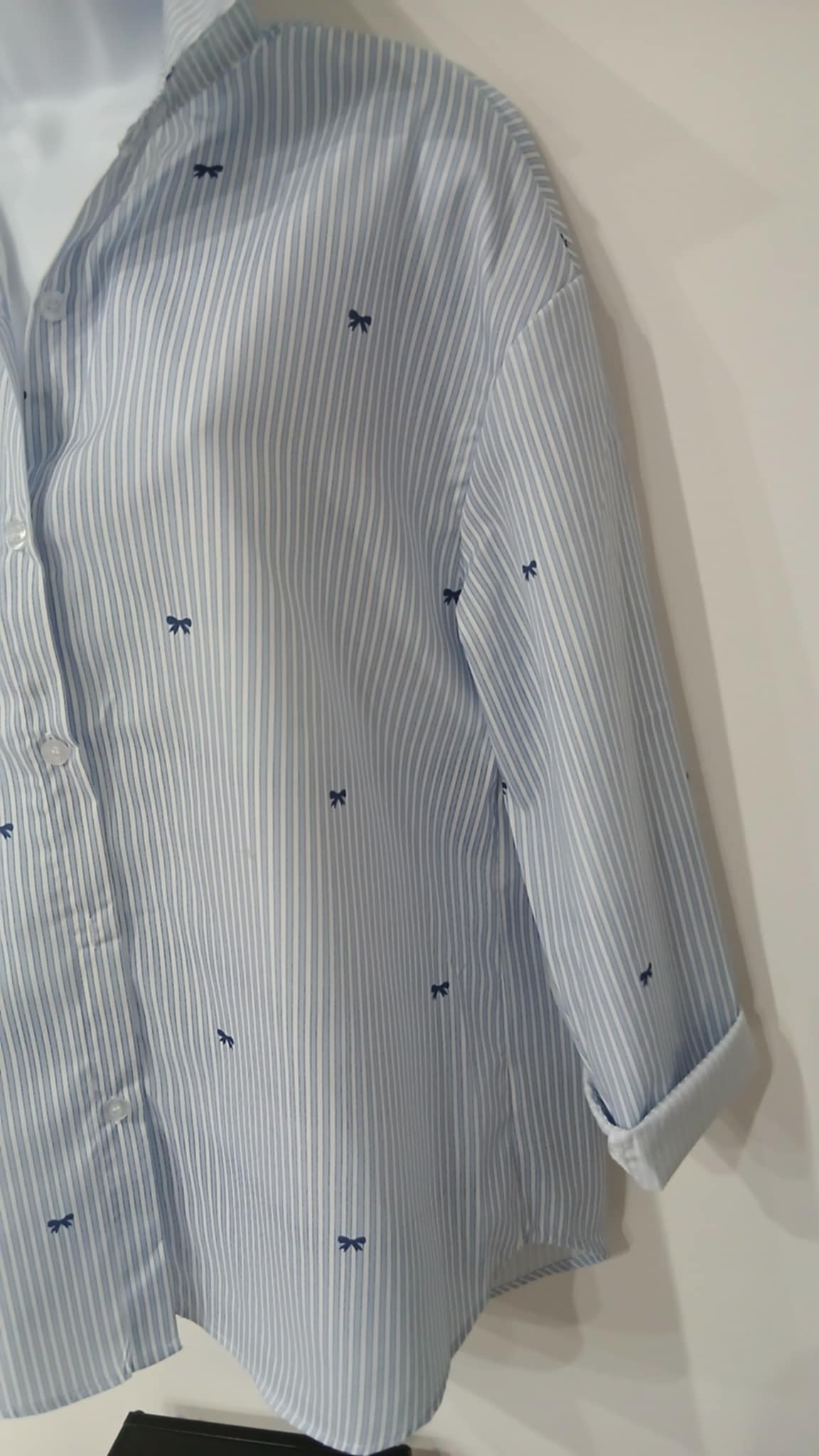 Rayures verticales bleu/blanc avec des noeuds bleu foncé