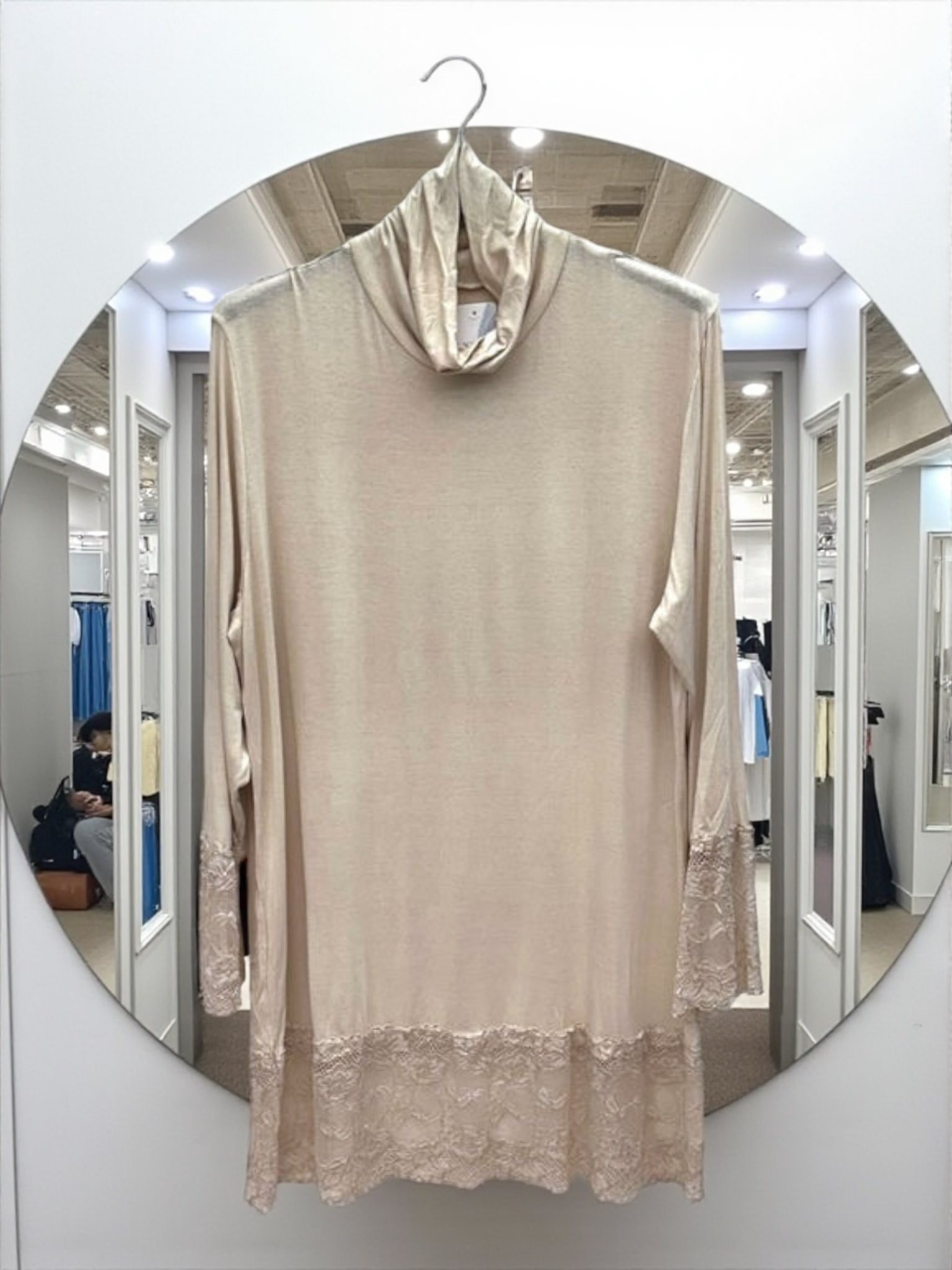 T-shirt rouleaux dentelle col roulé