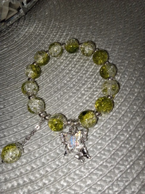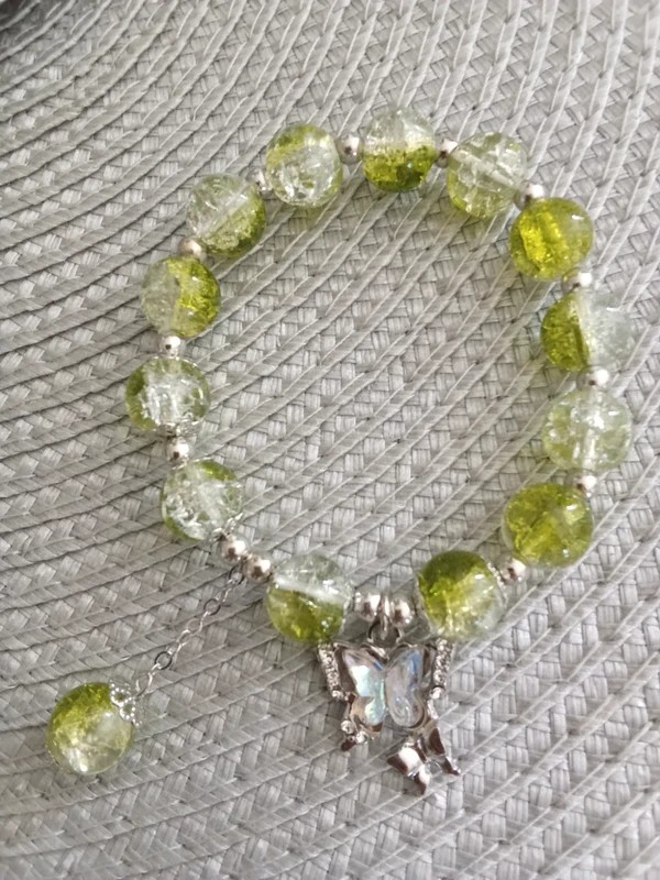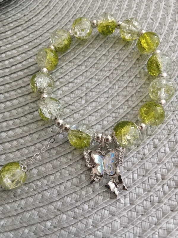 #bracelet #ajustable #papillon #vert #perledeverre #degradé #faitmain