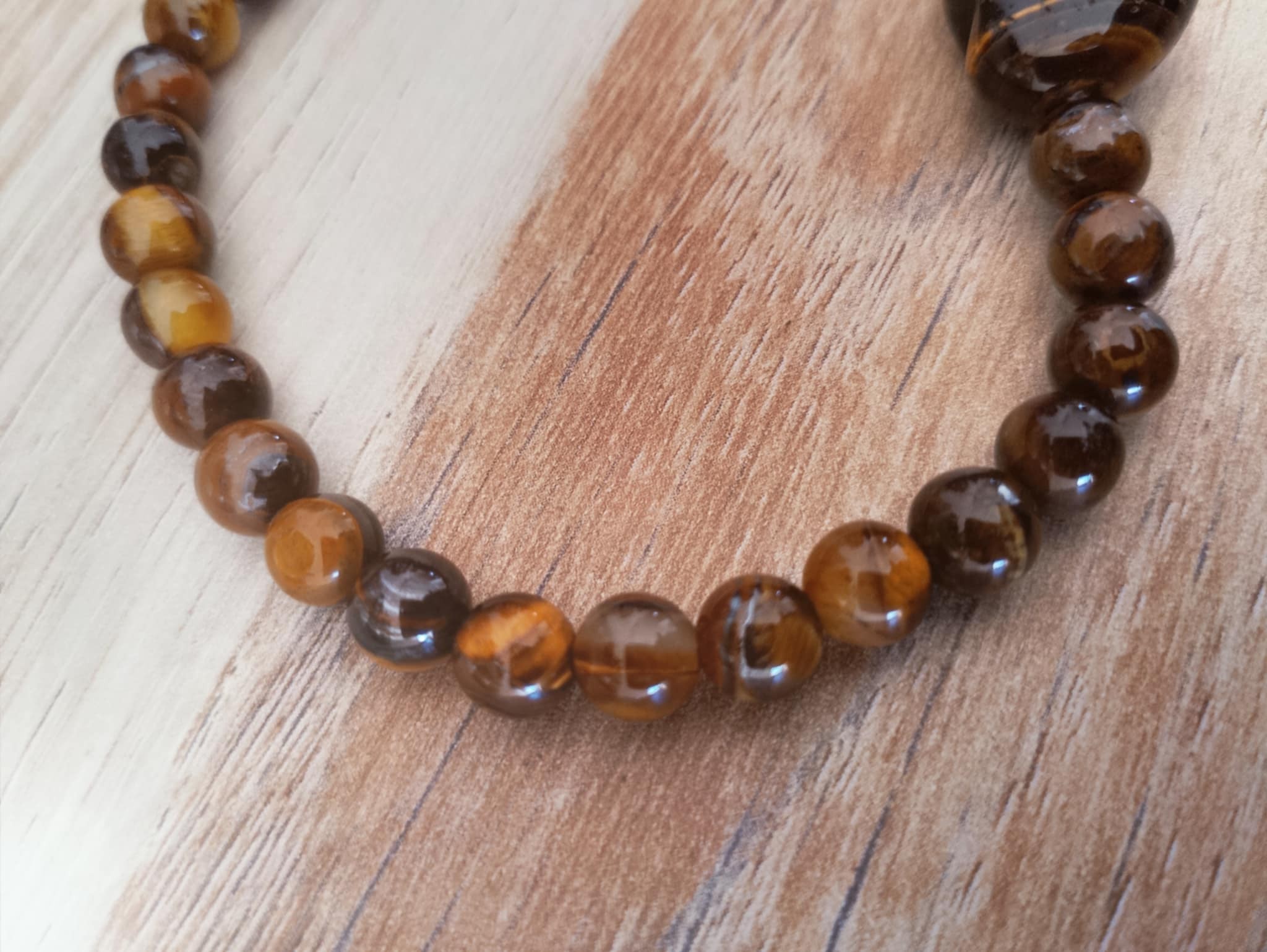Perles de pierre d'Oeil de Tigre véritable avec coeur centrale
