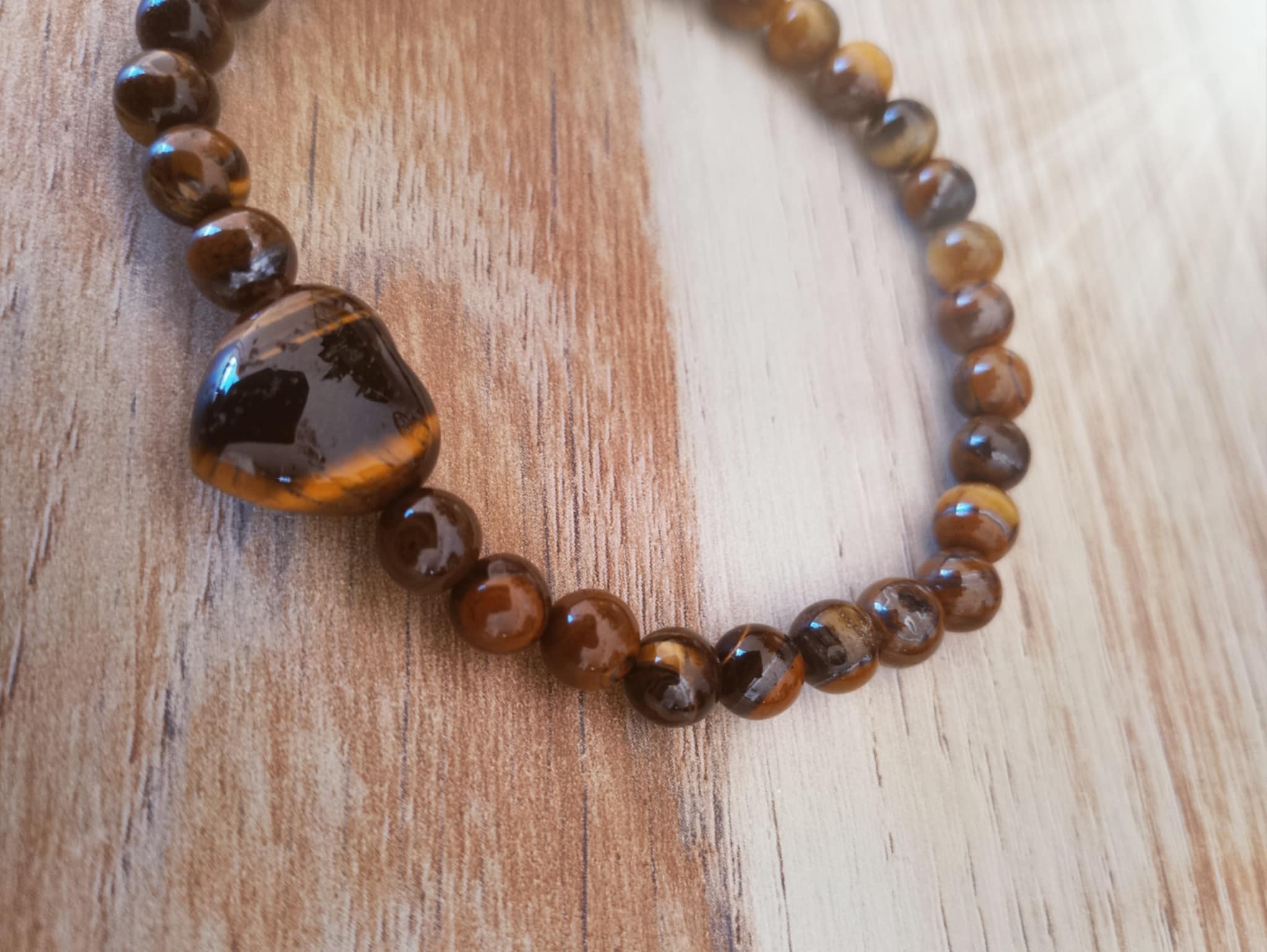 Bracelet Bohême avec coeur d'Oeil de Tigre