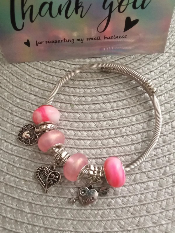 #braceletserpent #bracelet #rose #coeur #rigide #acierinoxydable #resine #breloque #faitmain