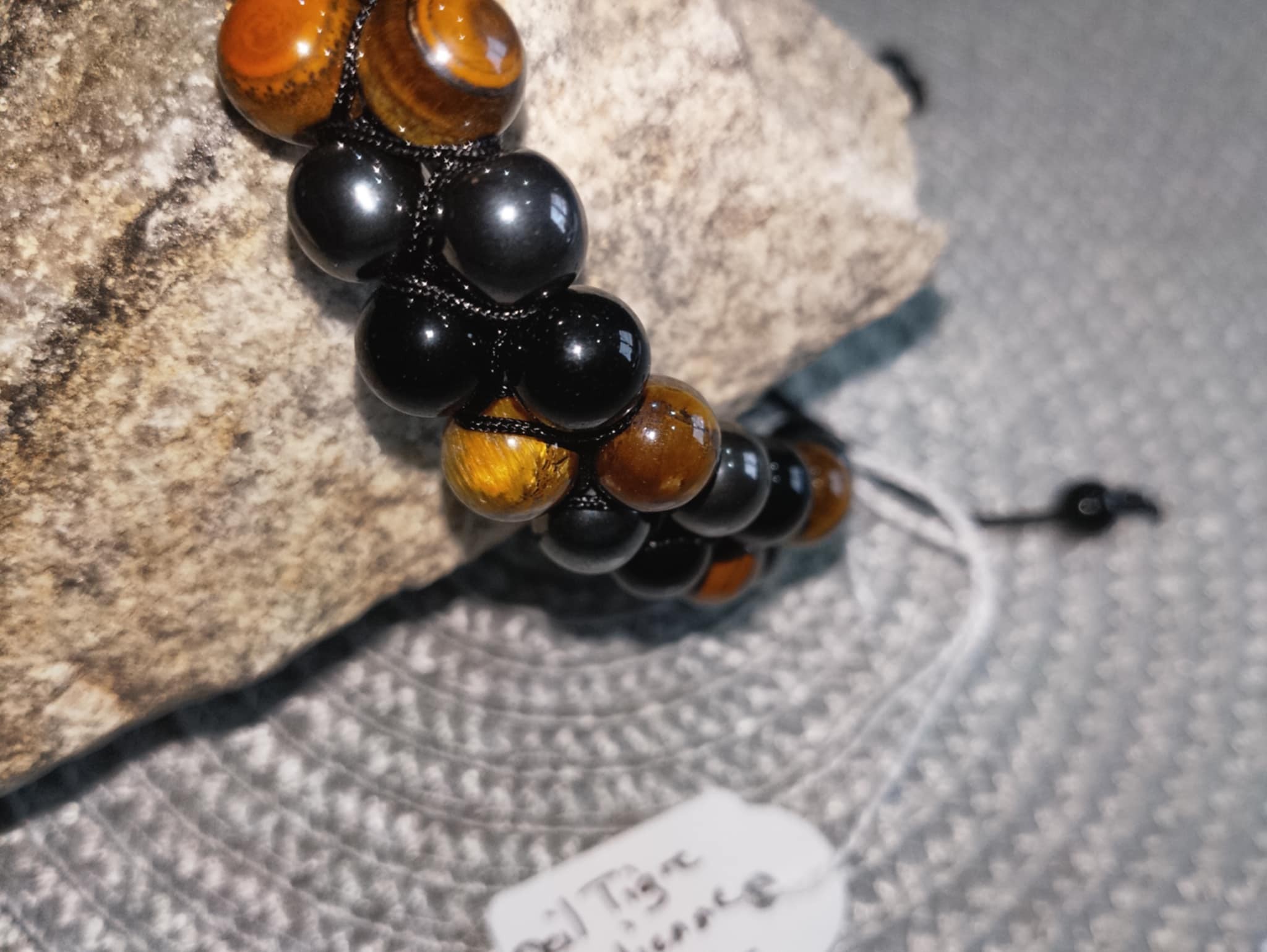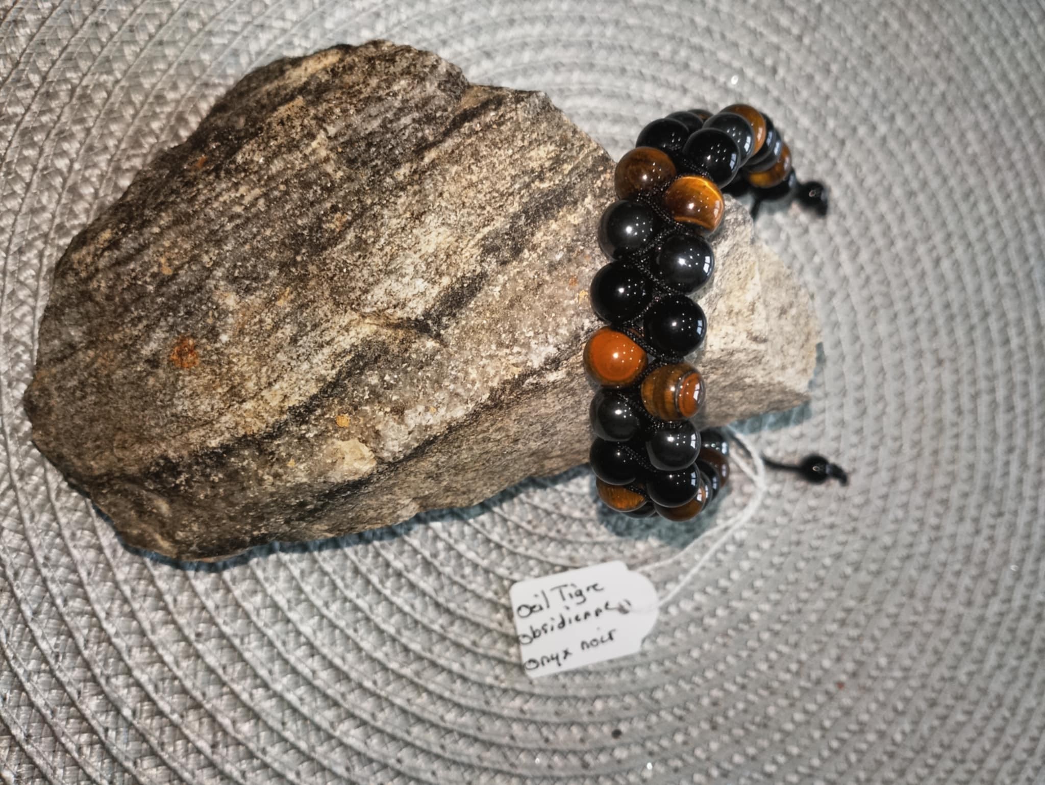 - Pierres : Hématite, Oeil de Tigre, Obsidienne noire