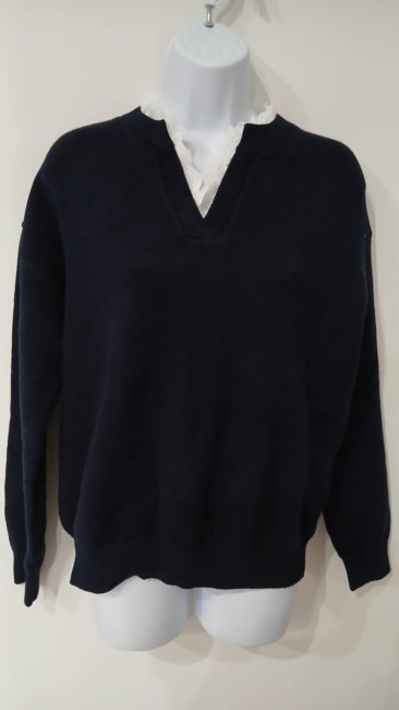 Pull marine avec bordure dentelle