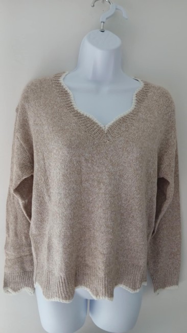 Pull over col V beige/blanc