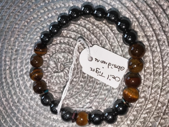 Bracelet Oeil de Tigre, Obsidienne et Onyx noir 8mm